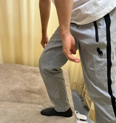 「ちょっと痛みを確認してくれませんか」と言うと、ベッドから降りて写真のようなことをする。