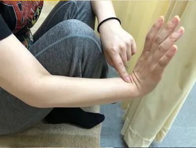 それが写真の実験ですが、下降結腸部を押して痛みがある時に、本来は大腸経を使いますが、肺経を使ったのです。